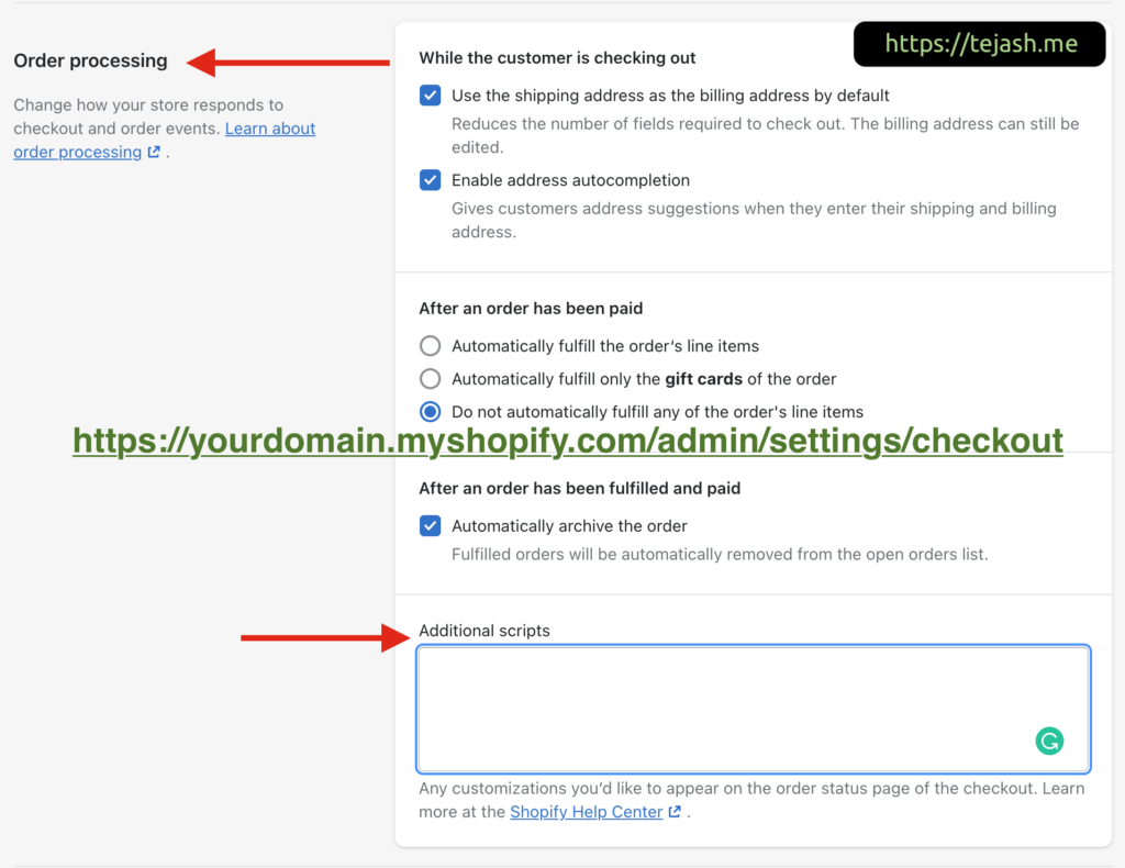 https://yourdomain.myshopify.com/admin/settings/checkout