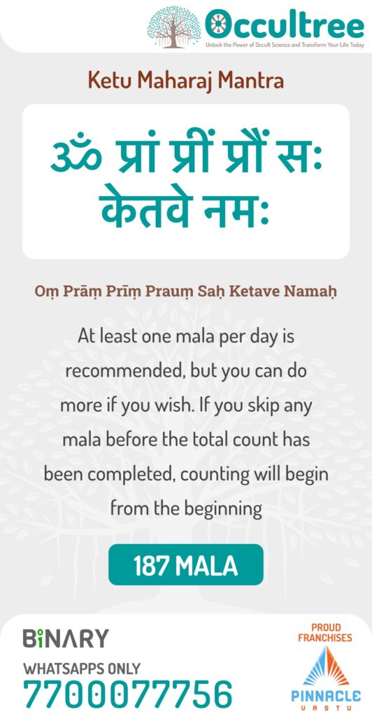 Ketu Maharaj mantra: Oṃ Prāṃ Prīṃ Prauṃ Saḥ Ketave Namaḥ