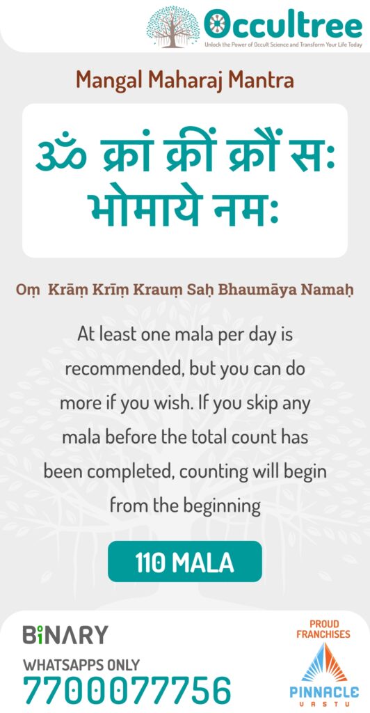Mars Maharaj incantation: Oṃ Krāṃ Krīṃ Krauṃ Saḥ Bhaumāya Namaḥ