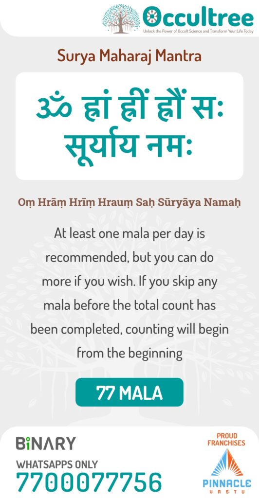 सूर्य महाराज मन्त्र: ॐ ह्रां ह्रीं ह्रौं सः सूर्याय नमः